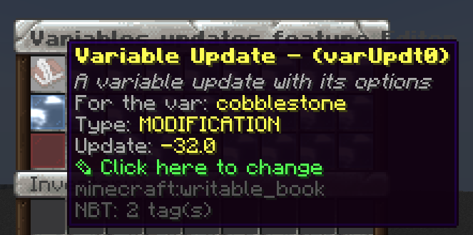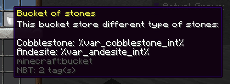 In this case I already know that the "stuff" stored will be stored in a variable, that's why I wrote it instantly as variable in the lore.