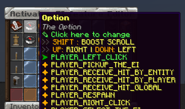 Now let's create the activator that will store the cobblestone, in this case RIGHT CLICK activator