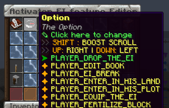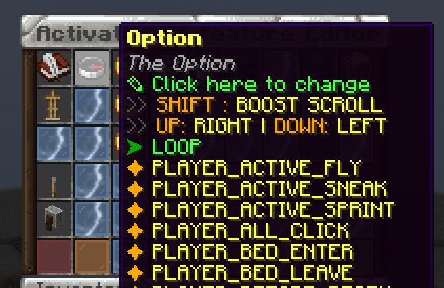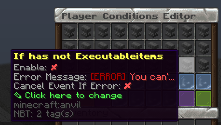 - Now, let's take a look at the method, it will consist on 2 loop activators, one in mainhand and the another one in all slots except mainhand, and, variables, that will disable the loop once it works one time + a PLAYER_DROP_THE_EI to also reduce the scoreboard value when the player drops the item, so it would look like this: