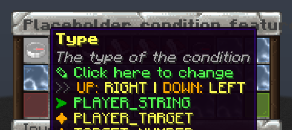 - The second placeholder, that is a playerCondition (and the condition is on the 2nd page)
