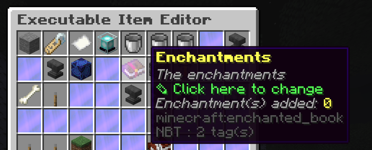 - But it's possible to add their enchants on your ExecutableItems by using NBTAPI plugin and following one of this ways: